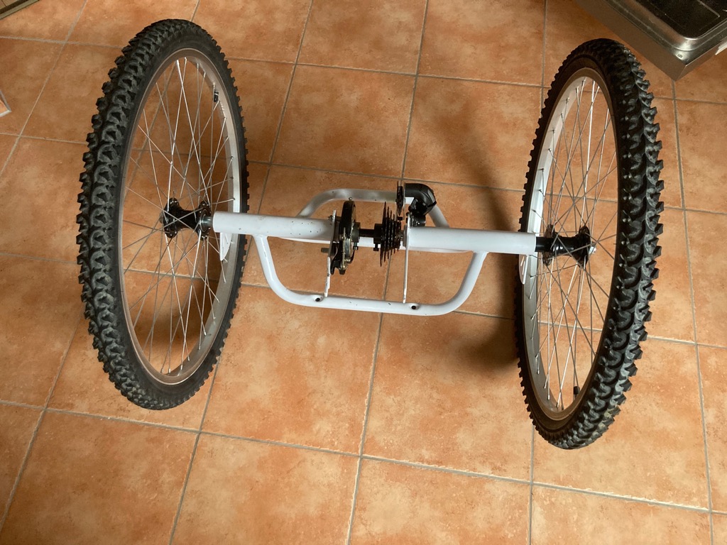 QuadVelo im Selbstbau Von hinten aufgerollt.