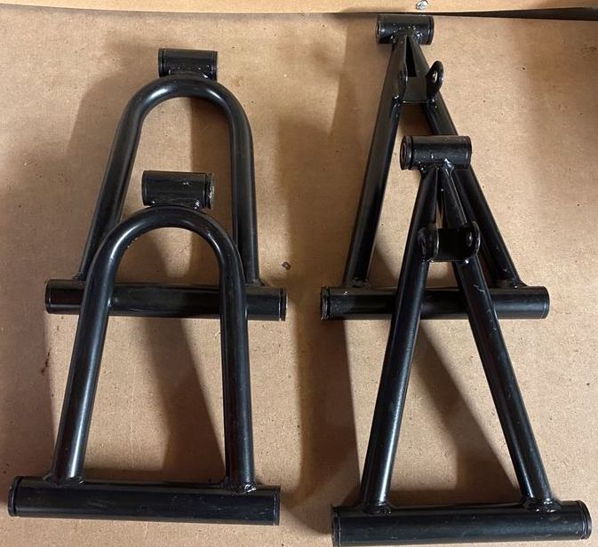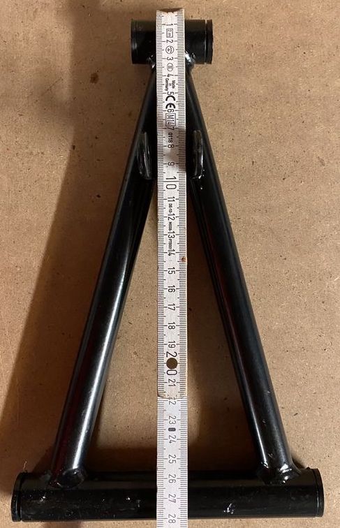 Für die zwei Achsschenkel (Radaufnahme) vorne müssten dann vier Gelenköpfe angeschraubt werden.