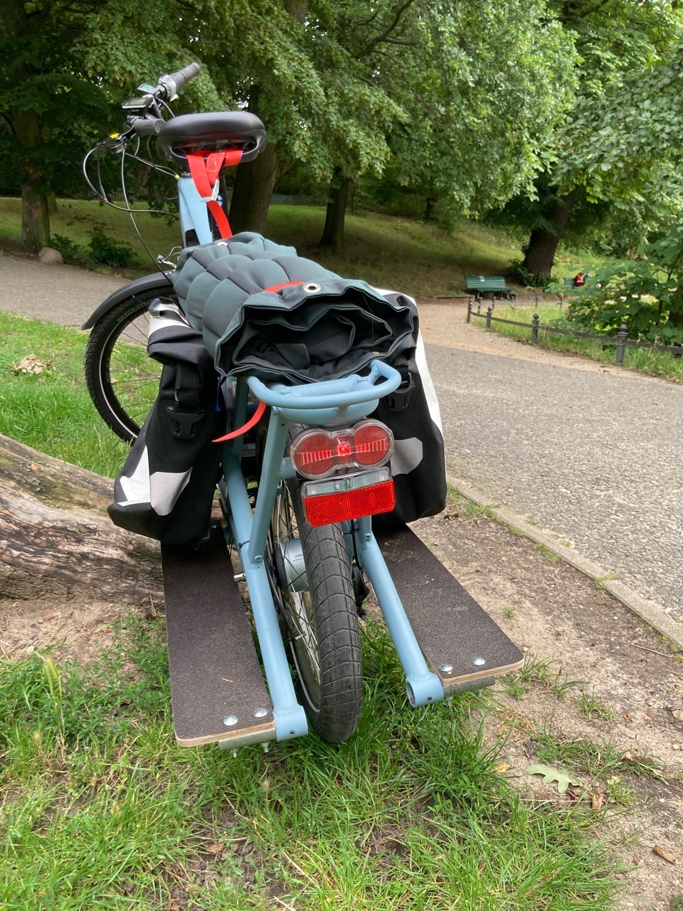 Kindertransport: Schon in meinem Johnny Loco hat sich der Kindersitz auf dem gefederten Pletscher Gepäckträger bestens bewährt. Nun kann er auch sehr flexibel in zwei Positionen, auf dem Longtail angebaut werden. So fährt der kleinste Passagier gut gesichert und gefedert.